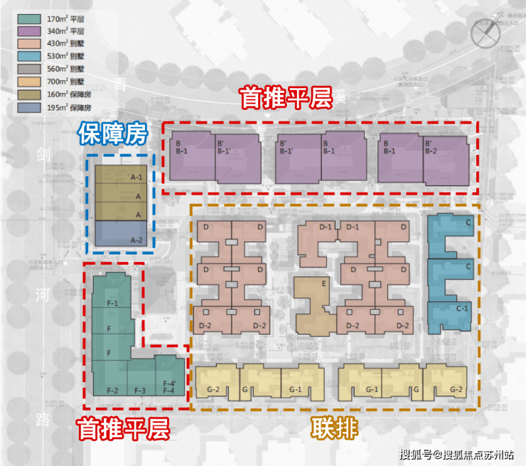 项目别墅是大头,且都是拼接型别墅:地上三层,地下一层,联排面积段为430㎡、530㎡、560㎡、700㎡,合计有23套。