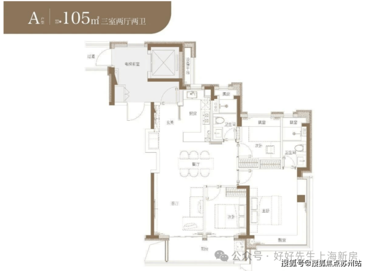 五层设计有3房2卫格局,每一个家庭成员都能有各自的私密生活。