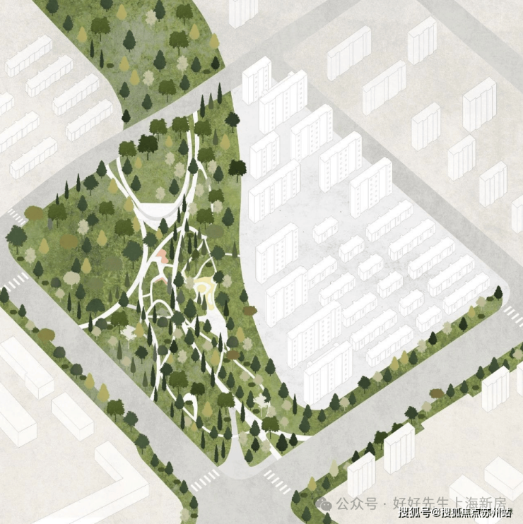 项目结合外部约6万方的公园,利用“一半公园,一半家园”独特性,将社区嵌入公园内,四季变换的树影浮动,让人感受自然的浪漫。