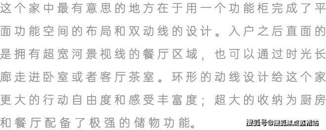 方案三易其稿,410平米的空间最终敲定的平面里只保留了两个卧室,但他们并没有把大量的空间留个客厅,而是将其均衡地分配给厨房、餐厅、茶室、卧室等生活的功能空间以及储物的空间.