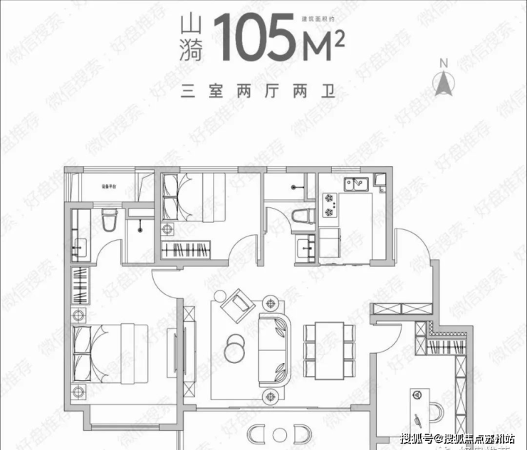 约105㎡户型同样实力不容小觑。受益于高得房率,约105㎡的空间呈现出了120㎡+的生活方式!