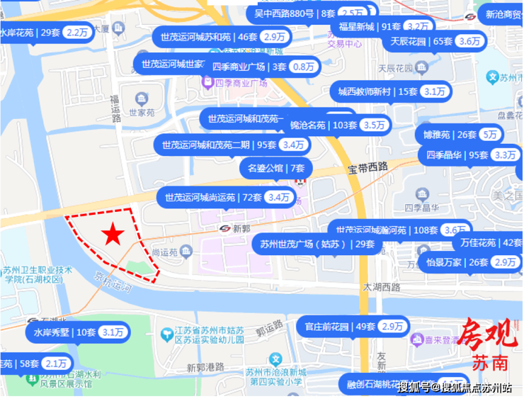 项目位于断供许久的姑苏区沧浪新城,宝带西路以南、福运路以西。项目打造 12栋16~24F小高层、高层产品,容积率为2.0,层高3.15米。
