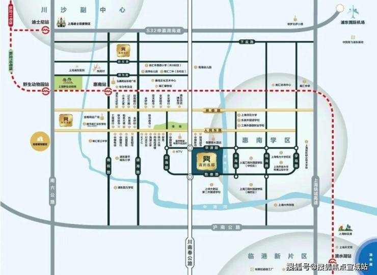 4. **轨交交通**:项目距轨道交通16号线惠南站直线距离约1.5公里。16号线能连接龙阳路交通枢纽,但需注意,该线路为市域快线,站间距大,车厢设置与市区地铁有差异,通勤至市区核心地带时间较长。