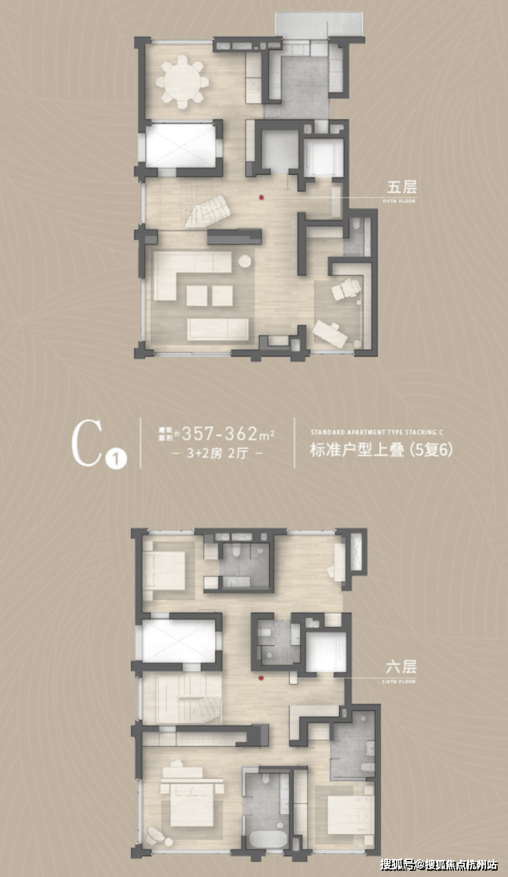 「沁风雅苑」项目1.2的容积率,整体由18栋6层楼的叠加组成,总套数101套,主力面积约311-360㎡叠墅,整体呈倾斜镜像状排列。