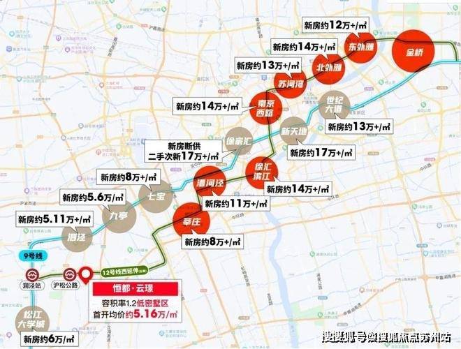 从全市格局来看,12号线可谓是上海的黄金线路,漕河泾、徐汇滨江、南京路、苏河湾、北外滩、东外滩均是上海寸土寸金的CBD,价格早已超过10万大关。而与项目相隔4站的莘庄(七莘路站)目前已经超过8万/㎡,相比之下容积率1.2的恒都·云璟完全能成为12号线沿线高精尖人群的改善置业目的地!