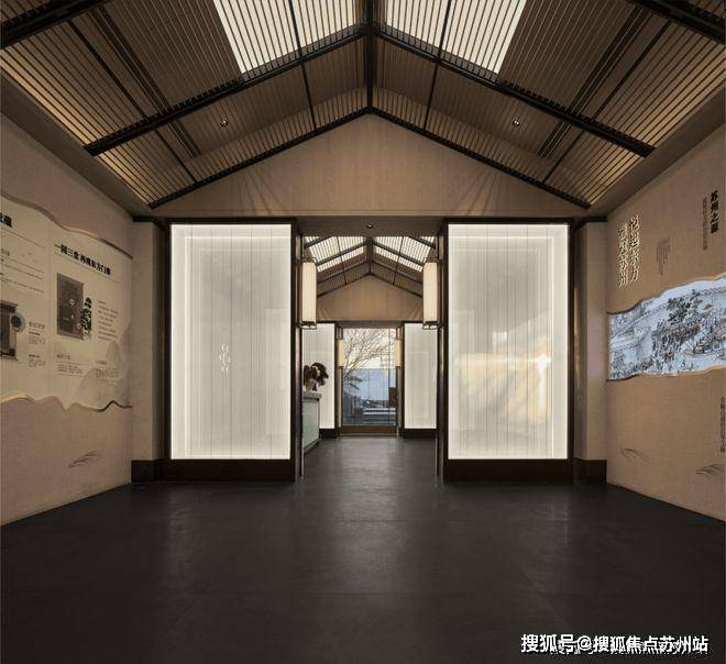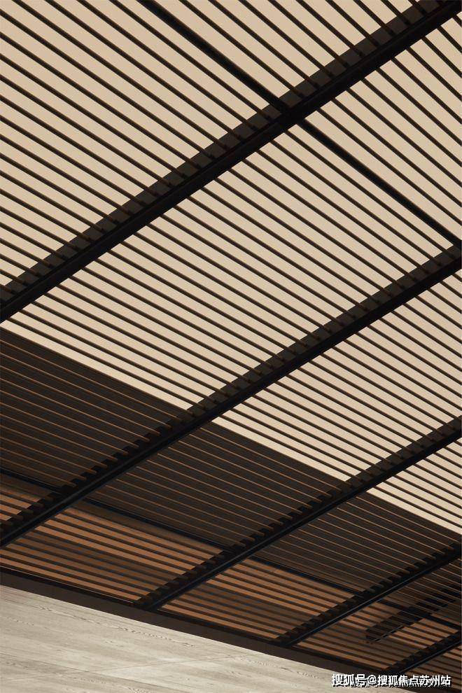 保利琅悦售楼处电话:400-8828-814走进空间,笔挺高耸的屋脊,是苏州特有的建筑结构,用简练纯粹的天花格栅演绎空间场景的简括峻爽、肃穆秀整之意。透过金属格栅散落光影作层层渲染,营造出清幽、旷远的空间氛围。