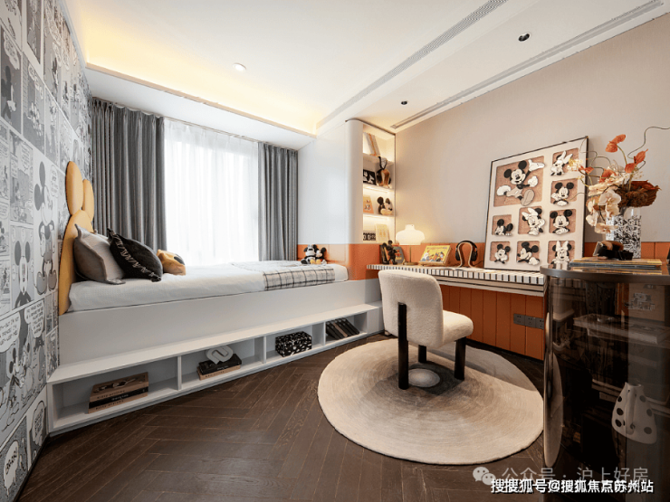 南北通透的主卧套房,则是另一种“极致”,将主卧小家化的功能性得到了充分释放,但同时酒店式的设计则为私密空间的舒适度与空间仪式感给予了最佳的氛围;更阔绰的飘窗设计,不仅让室内空间更拓展,视野更开阔,还能承载更多功能,坐在飘窗上品茗、读书,享受午后阳光的轻抚,听耳边小鸟的低鸣,生活就是这样惬意。
