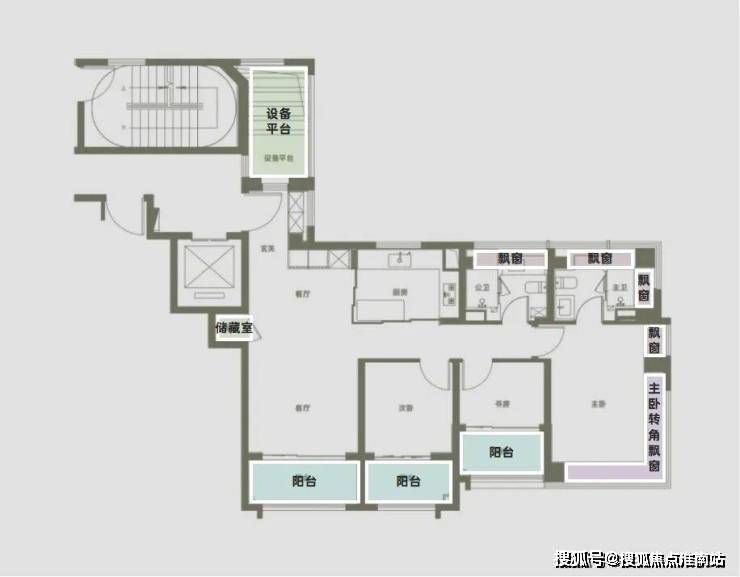 主卧采用270°广角飘窗,极大拓宽了采光与观景视野。