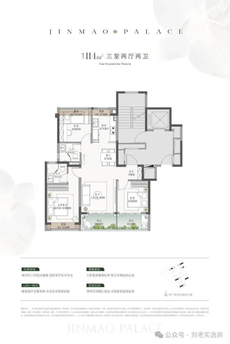建面约114㎡3房:约700万级低总价上车首选,闭眼可冲。