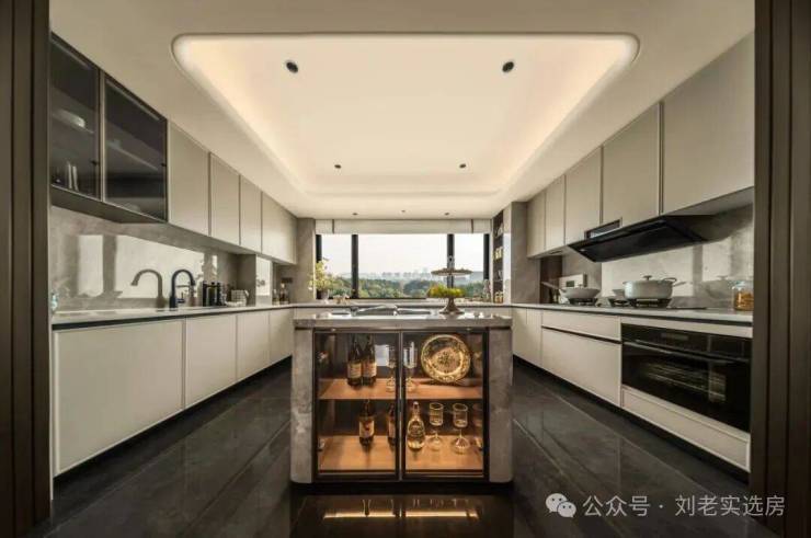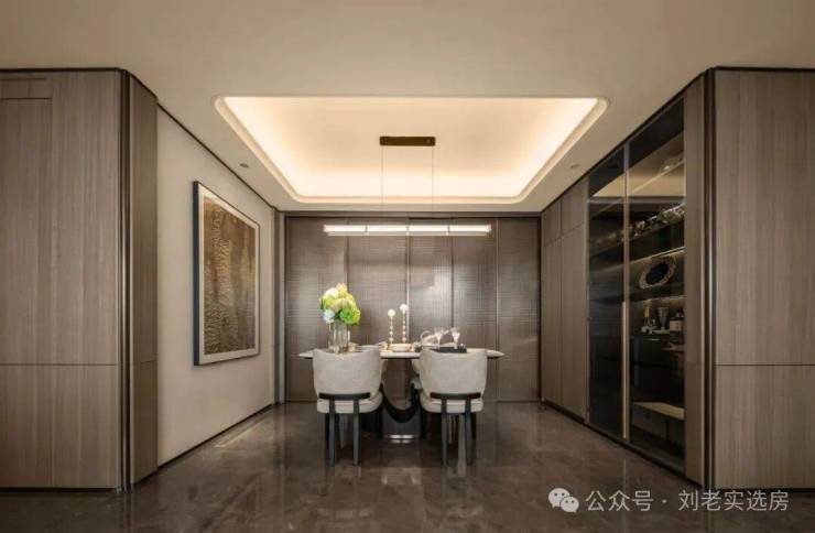 有一个细节大家可以在实地看样板间时留意:交付的内嵌式冰箱面板也是采用了木饰面,高级感扑面而来!