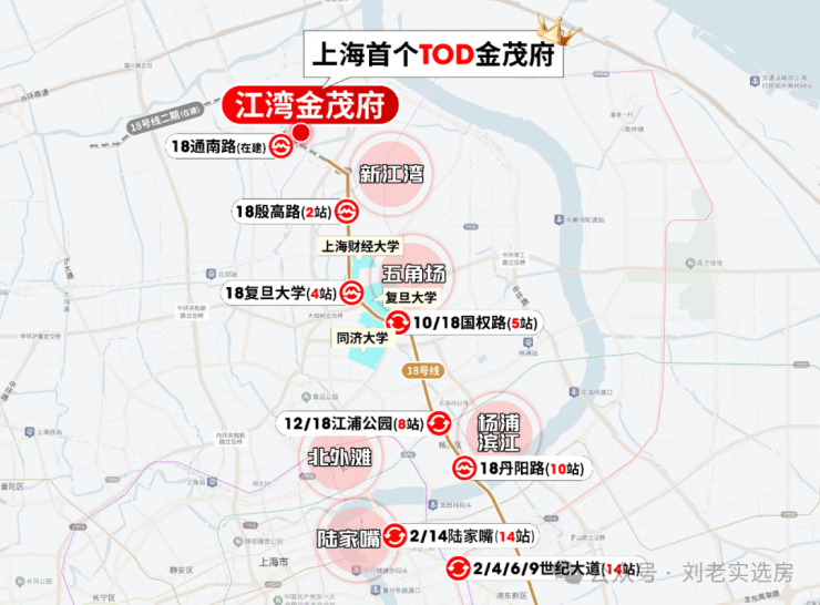 要知道江湾金茂府2站就是新江湾、4站五角场、8站杨浦滨江。