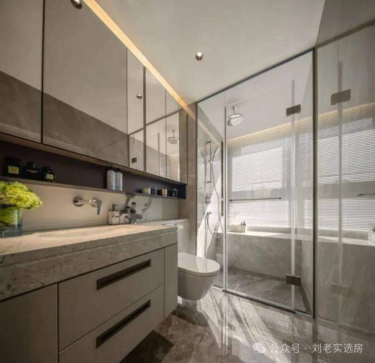 甚至连主卧内卫生间墙面都做了弧线收边,精致感无处不在