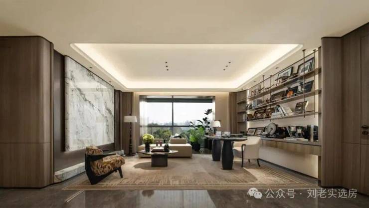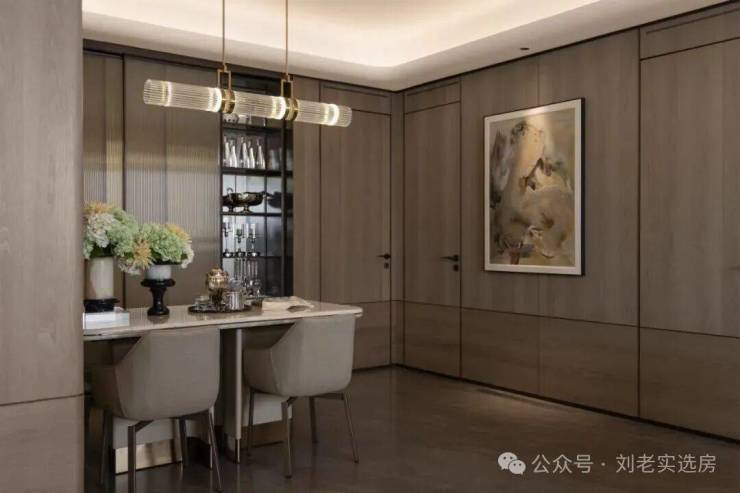 与常规新房室内没有门与墙的生硬拼凑感不同,江湾金茂府通过大量木饰面、隐藏门等细节,形成统一的设计语言,色彩与材质搭配协调统一,尽显整体美感!