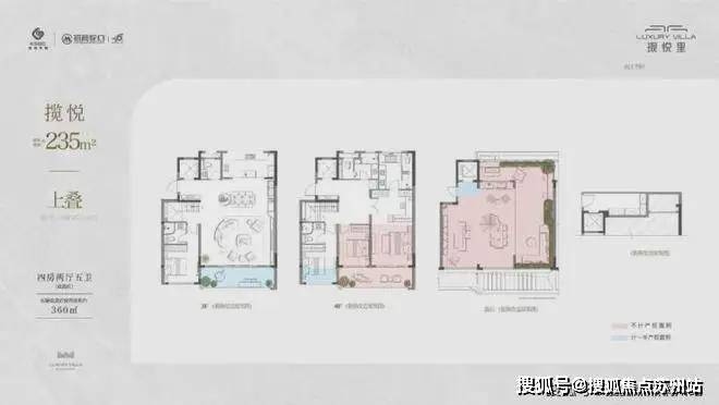 • 建筑面积约235㎡上叠,实得面积约360㎡,四房两厅五卫
