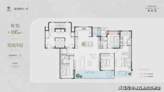 • 建筑面积约185m²极境洋房,四房两厅三卫