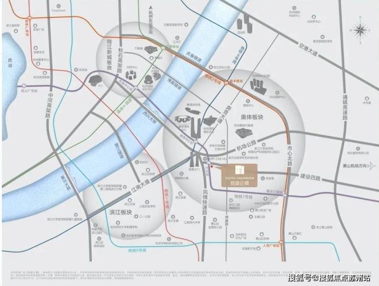 周边大小“莲花碗”、T-ONEMO(在建)、奥体中心、奥体印象城、滨江银泰城、杭州SKP(在建)等地标建筑星罗棋布,构建起一个资源高度聚集的城市封面区域。同时,项目往西约200米便是重要交通干道风情大道,依托三横两纵的便捷路网,能够快速通达滨江区政府、万象城、来福士、市民中心等城市关键节点,交通优势显著。