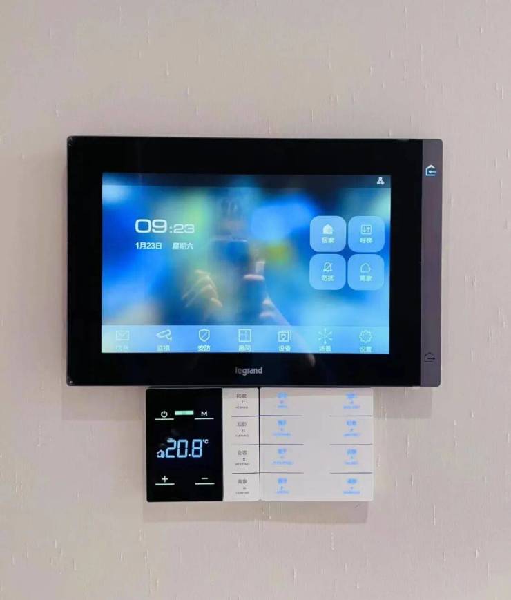 还有这个罗格朗开关,国际一线品牌的开关,功能强大,集灯光、窗帘、空调、窗、新风、地暖等功能于一体,这个开关对于生活的便捷度,只有真正体会过才能了解: