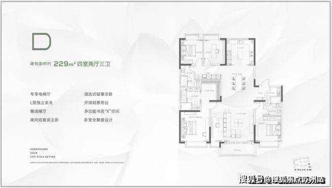 现代典雅立面,灰色搭配香槟金的色调,彰显不同建筑审美,外立面为品质铝板+玻璃幕墙,局部干挂石材和保温一体板,通过数控切割、精度弯弧、手工焊接、打磨抛光、七重清洁、烘干喷漆、高温定型等过十余步精细工艺,是高端住宅中品质最高的立面铝材。