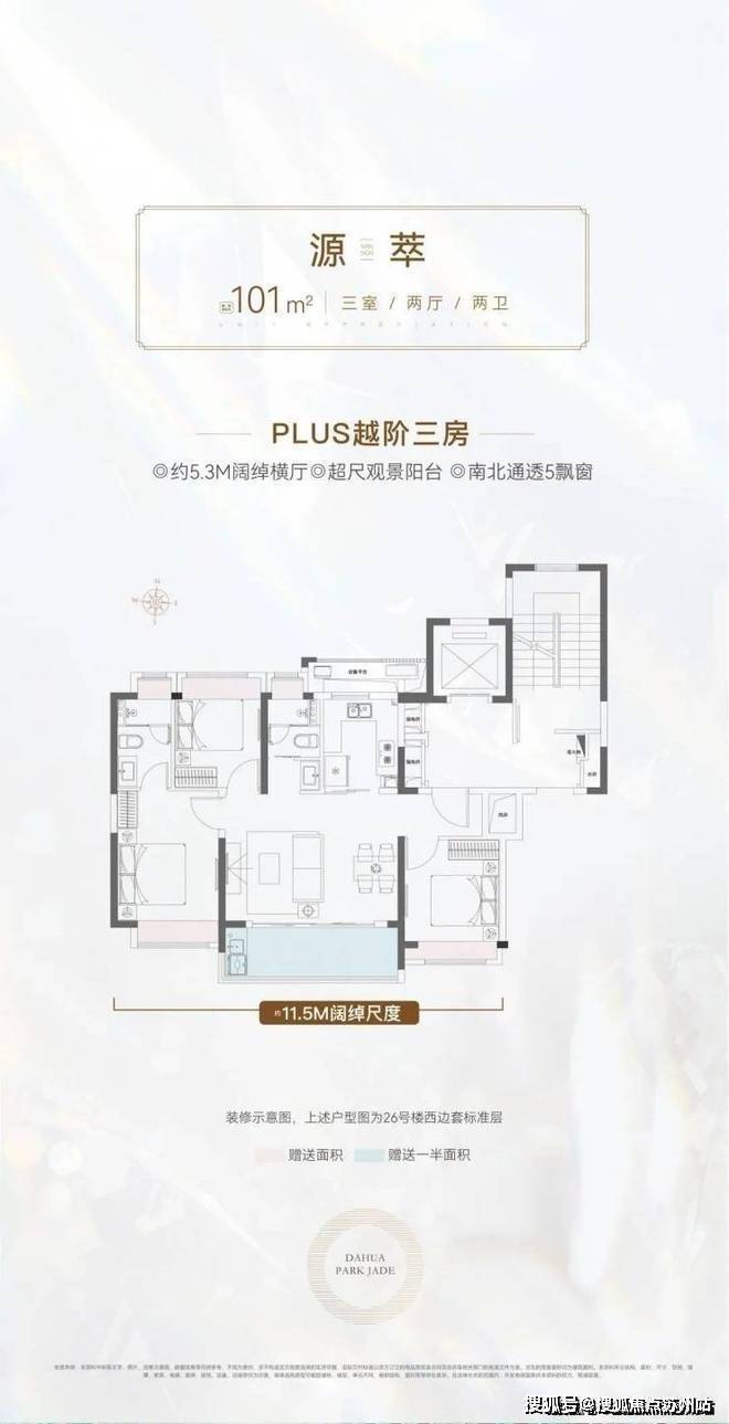 101㎡越阶三房:约5.3M阔尺横厅/约11.5M南向面宽,宽纳聚会欢愉