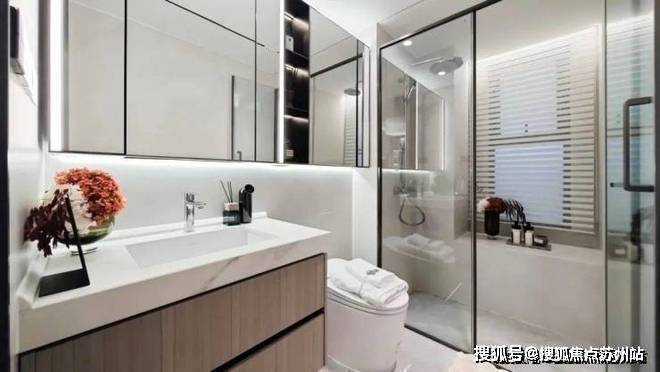 一般而言,主卫和次卫能拥有窗户达到全明采光已经称得上优秀了,而这套户型的两个卫生间均都有飘窗,丰富更多收纳可能性。