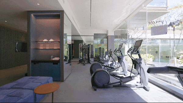 健身房:配备来自全球顶级奢侈品牌——美国的必确(Precor)的顶级健身器械,整面落地玻璃引入庭院景观,让运动如同在自然中漫步。