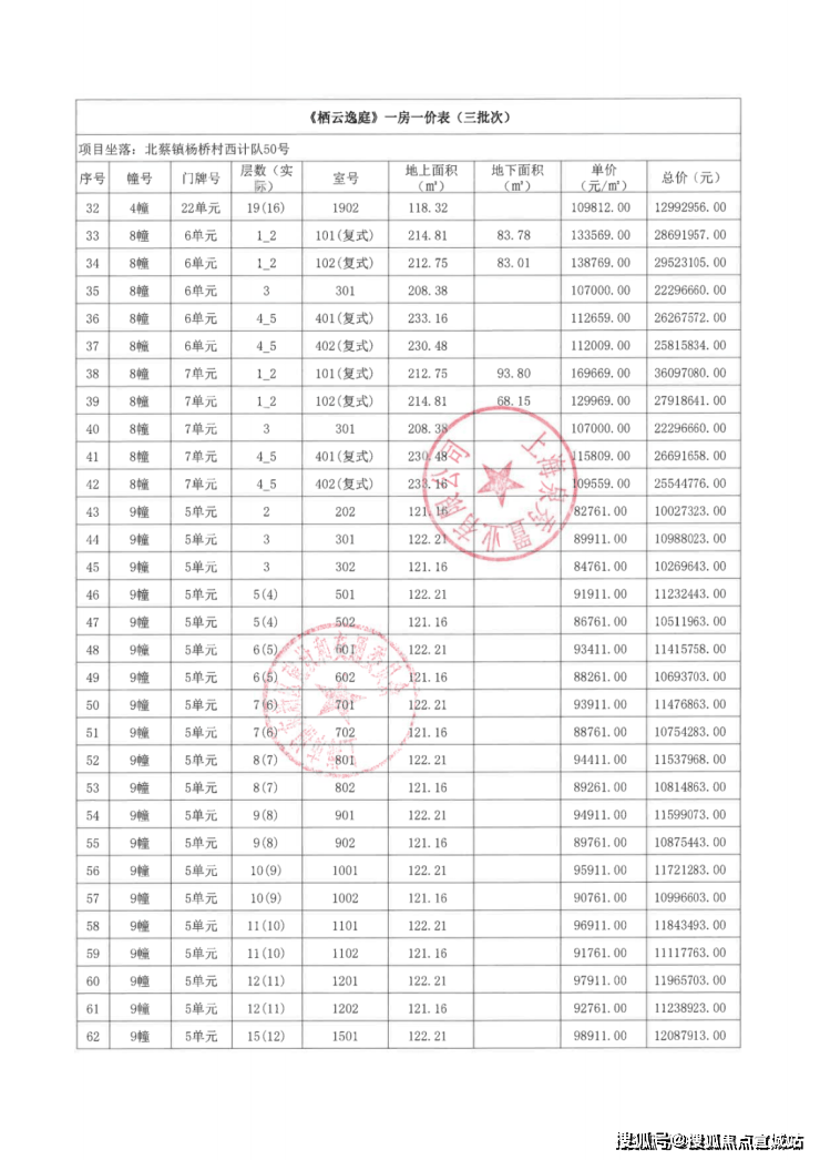 一房一价表如下: