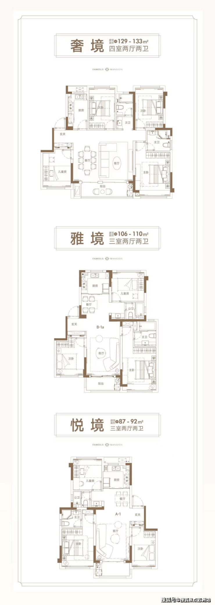 建面约90-129㎡精装3-4房
