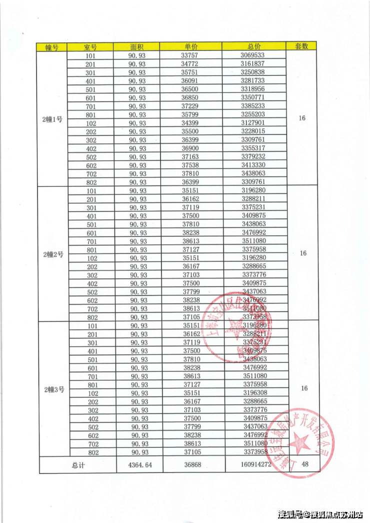 项目一房一价表