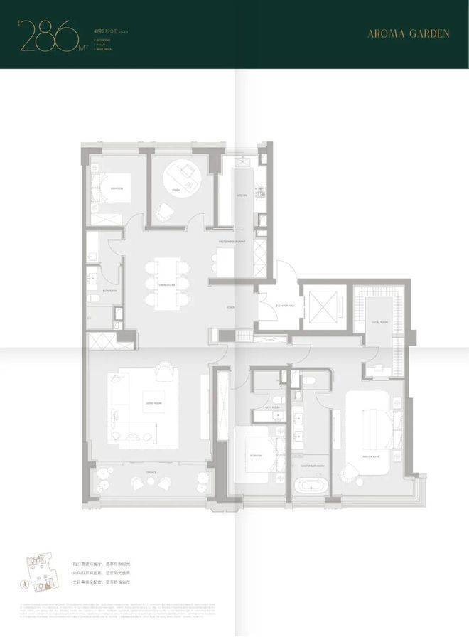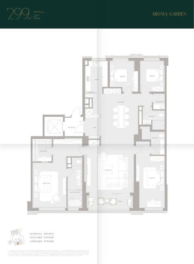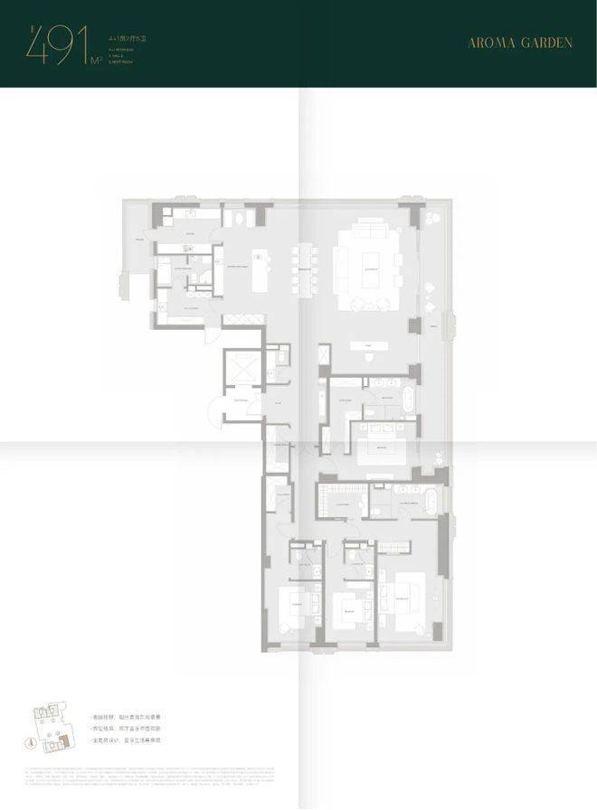 491㎡户型:南向面宽26米、双主卧、中西双厨、家政动线独立