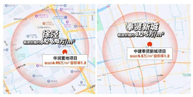 比如青浦徐泾容积率1.2的宅地和奉贤新城容积率1.2的宅地,比起板块其他新房,联动价至少高5000元/㎡!