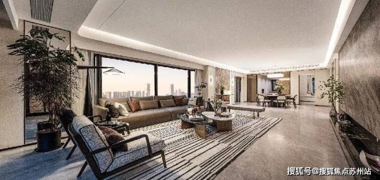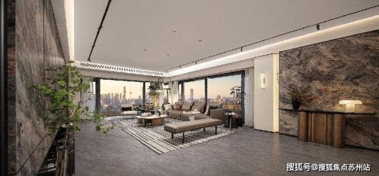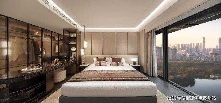户型中最引人瞩目的是270°环幕端厅。这是具有天际视野的城市观景台。它直面运河,远处是狮山、姑苏、园区繁华,独具一格的“王者”视角,将居高临下、天地胸怀的人生赢家气场轻松拿捏。这样一扇窗,带来了无界尺度、无界视野、无界胸怀,这才是大平层真正价值所在。