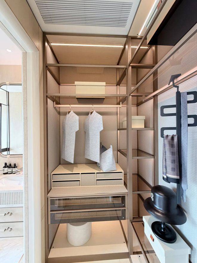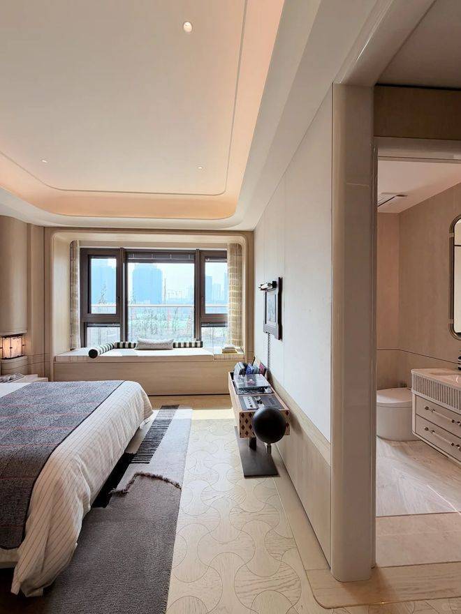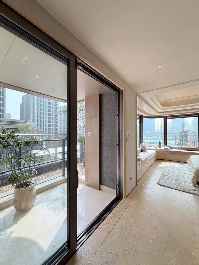 全龄顶豪户型,适配多元终极需求。项目定位纯改善顶豪社区,主力打造建面约195-365㎡奢阔大平层,另有少量建面约588㎡顶层环幕定制大宅,精准覆盖三口之家、多代同堂、终极置业等不同家庭需求。所有户型均采用全景舱设计,部分户型实现270°环幕采光,中高区可俯瞰黄浦江S湾与陆家嘴天际线,通过“全屋飘窗全赠送+阳台半赠送”设计,得房率高达88%-91%,空间利用率拉满。