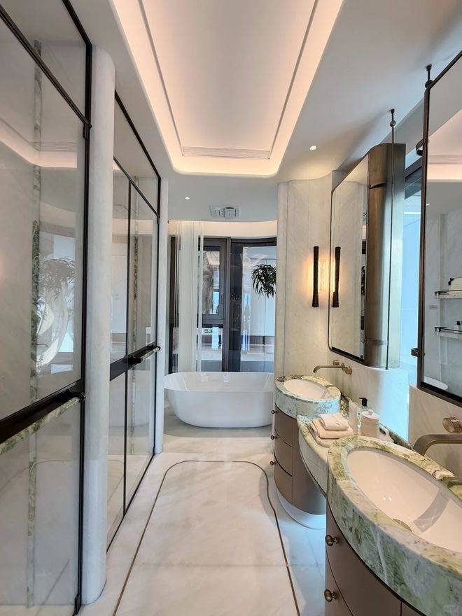 四大国央企精工,品质细节可鉴。依托中海、招商蛇口等四大国央企的雄厚实力与丰富开发经验,项目从规划设计到施工建设全程实行严苛品控,资金稳健、交付无忧,彻底杜绝降标减配,为购房者筑牢品质保障。项目全系精装交付,装修标准超15000元/㎡,甄选米勒、高仪、杜拉维特等国际一线品牌,标配全屋地暖、中央空调、新风系统,搭配全屋智能家居系统,实现智能安防、温控、照明等一体化控制,兼顾品质、健康与便捷。