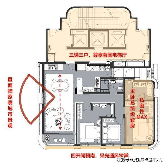 陆家嘴太古源源邸售楼处电话4008818994☑️☑️户型四开间朝南,三间卧室均享南向采光,客餐厅中部的1㎡观景窗、约270°全景阳台共同将陆家嘴天际线引入室内,高区房源更可远眺江景。