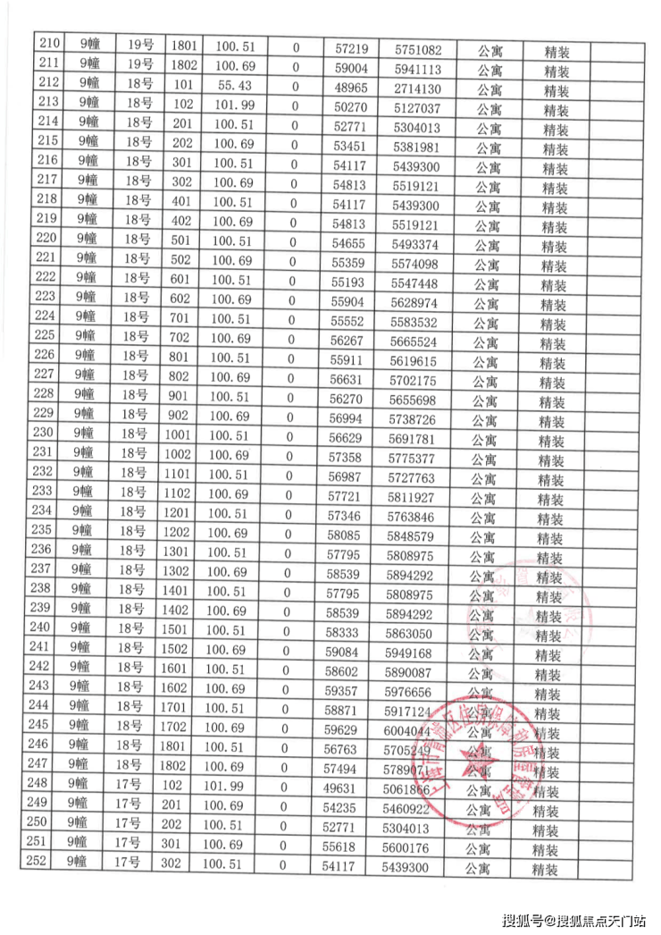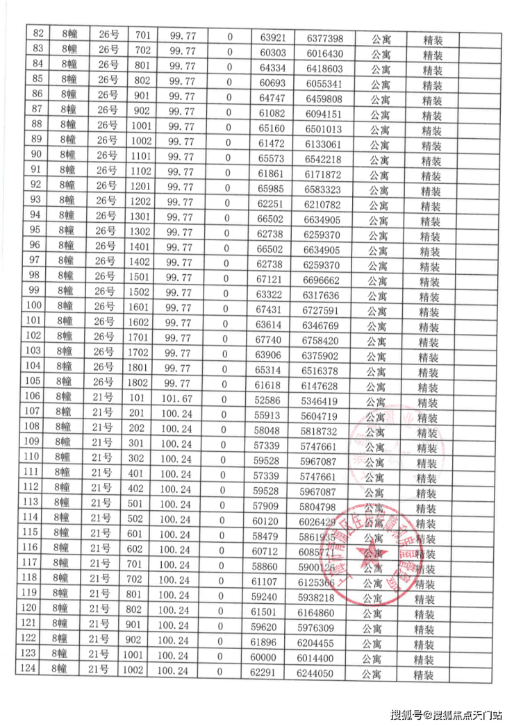 一房一价表: