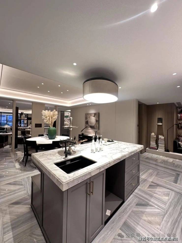 万科中興傲舍凝聚72种高端豪宅都难得一见的奢材,如皇家白奢石、Prada绿皮革面奢石、砖纹定制铝板等等,每一处细节都透露出精致与考究。