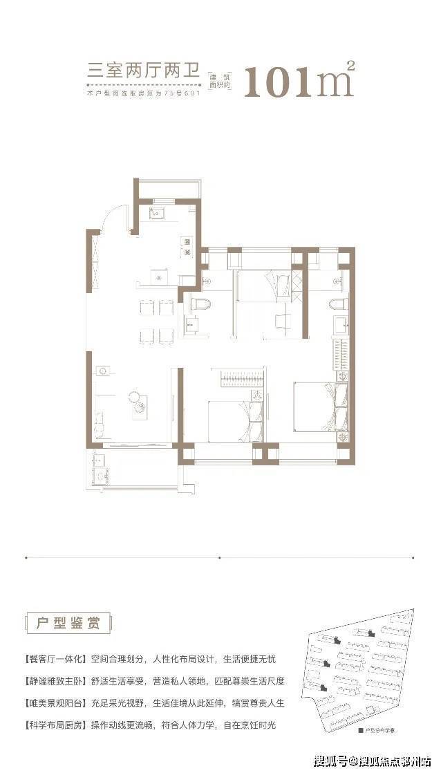 高层户型(84-101㎡三至四房),三开间朝南、双卫设计,全明通透,部分户型还能享受高尔夫视野。