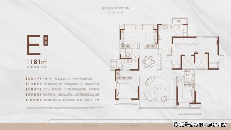 产品定位:改善型大平层社区,主打129-181㎡四至五房,得房率76%-79.6%,层高约3-3.3米.