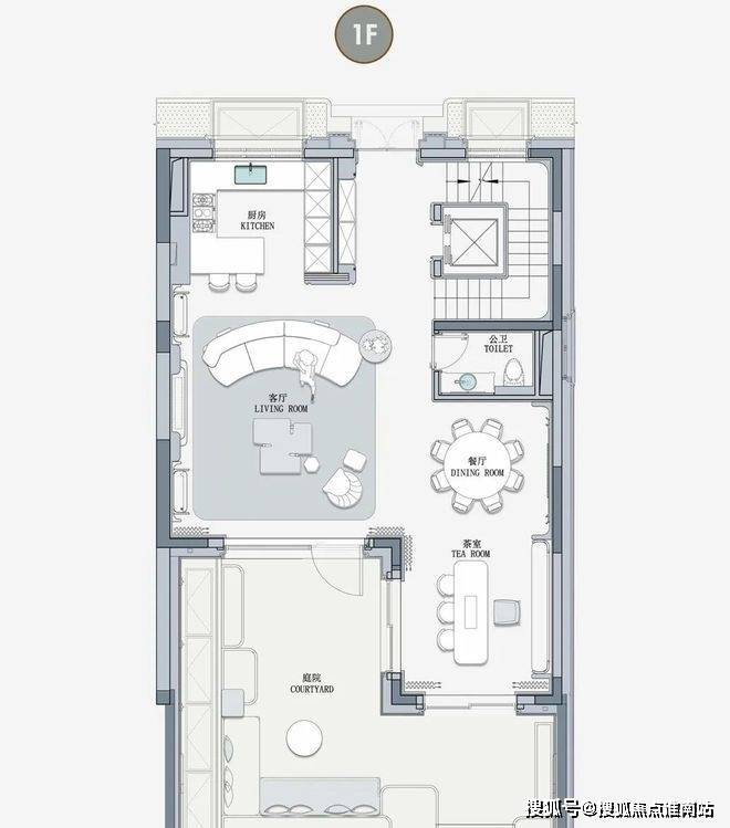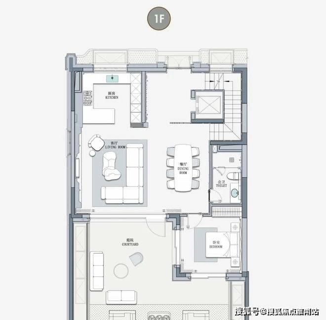 客厅互通,彰显家族生活的轩阔厅堂,2F家庭层,儿女的幸福与陪伴皆在左右,3F总裁套房式Penthouse,用具象的尺度描写人生成就的高度。