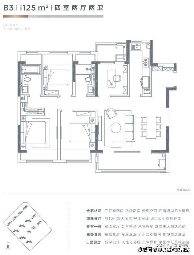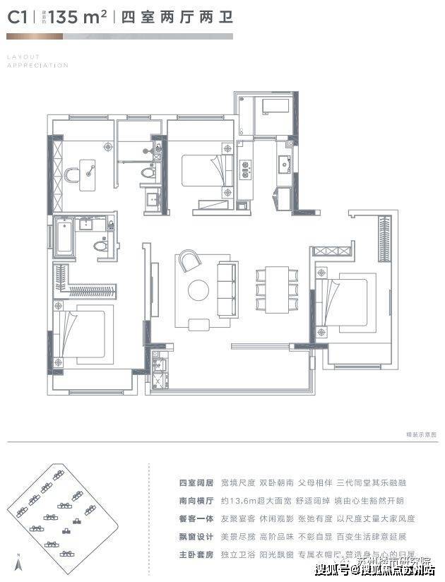 户型:建面约105㎡、125㎡、135㎡