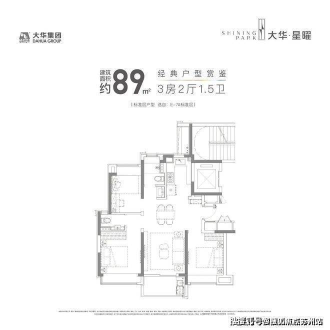 建面约89㎡3房2厅1.5卫 ▼上海大华星曜官方售楼处电话:400-8673-567√√√【已认证】