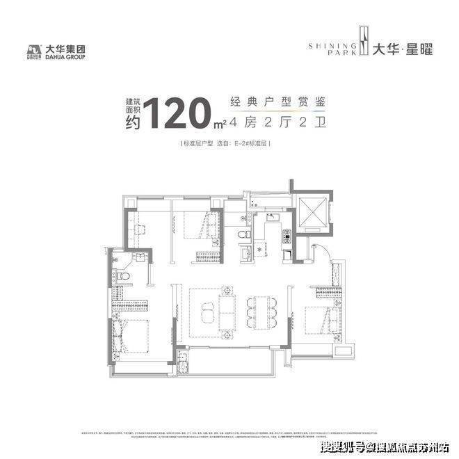 建面约120㎡的产品,市面上大多都是3房但大华星曜做了4房的设计,实用性非常出色。