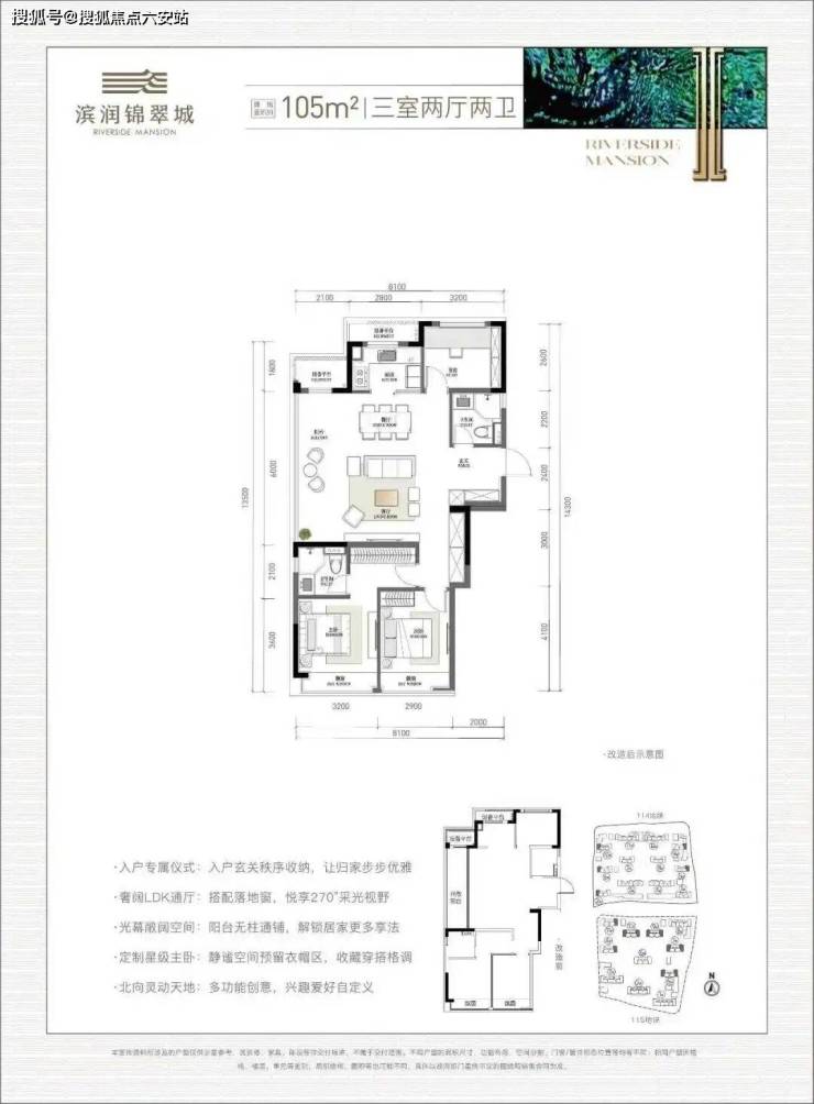 建面约105方稀缺边套三房两卫,社交力UP。