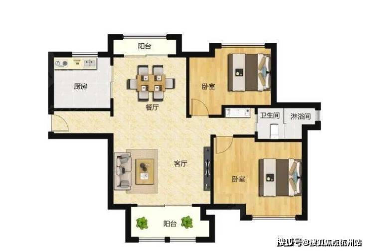 二层为大面宽客厅+南北两间独立套房;