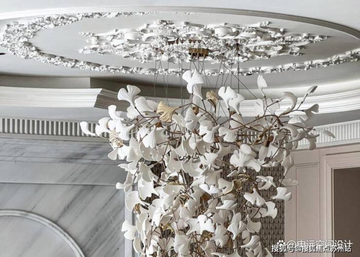华丽的银杏叶吊灯,自顶部倾泻而下,营造出梦幻氛围,仿佛置身于凡尔赛宫的舞会现场。