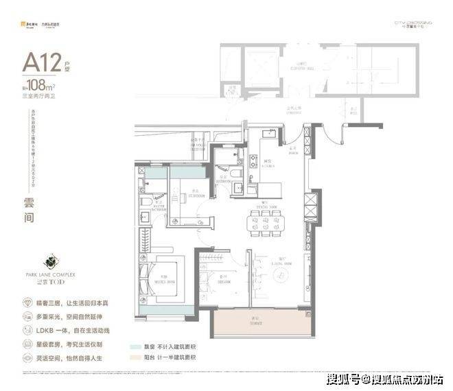 建面约108㎡的明星户型,则在有限的空间内做到了尺度感与舒适度的最大化。横跨客厅与次卧的巨型宽面阳台,采光面极为奢侈