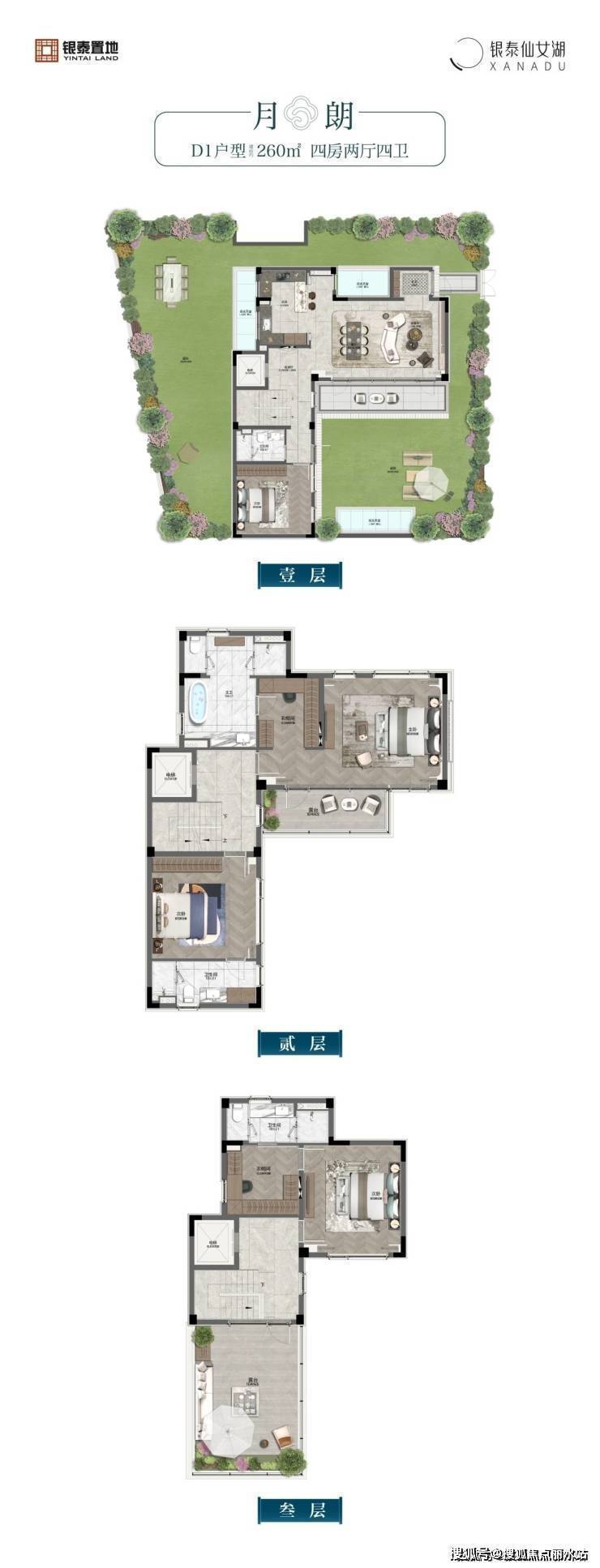 【产品类型】:建面约260-350㎡坡地院墅