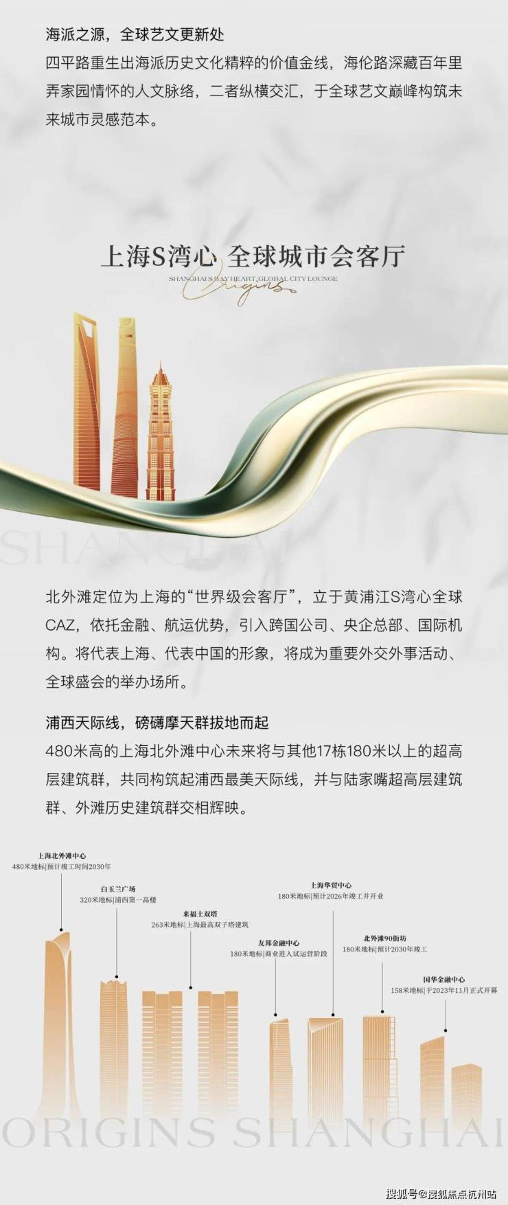 百年虹口海派源,磅礴摩天群正拔地而起,在世界会客厅北外滩,展开黄浦江S湾心全球CAZ的时代版图。