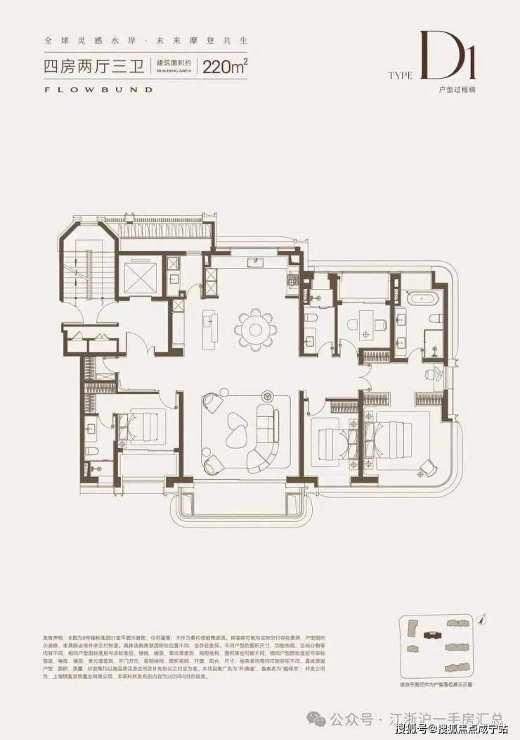 建面约220㎡4房2厅3卫户型