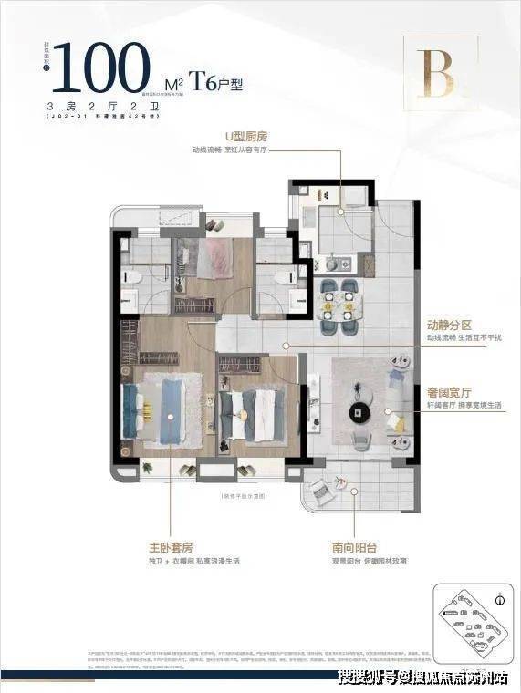 建筑面积约100㎡/118㎡三房两厅两卫,三口之家/三代同堂从容满足,南北通透外,餐客一体,动静分离居住舒适度更高,三开间朝南,三房全飘窗,日常在阳台上饲花弄草,生活将被赋予高仪式感。
